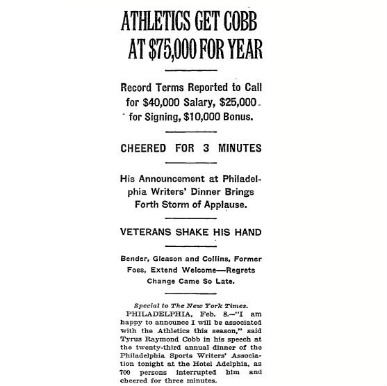 1927: Ty Cobb assigned by the Detroit Tigers to the Philadelphia Athletics.